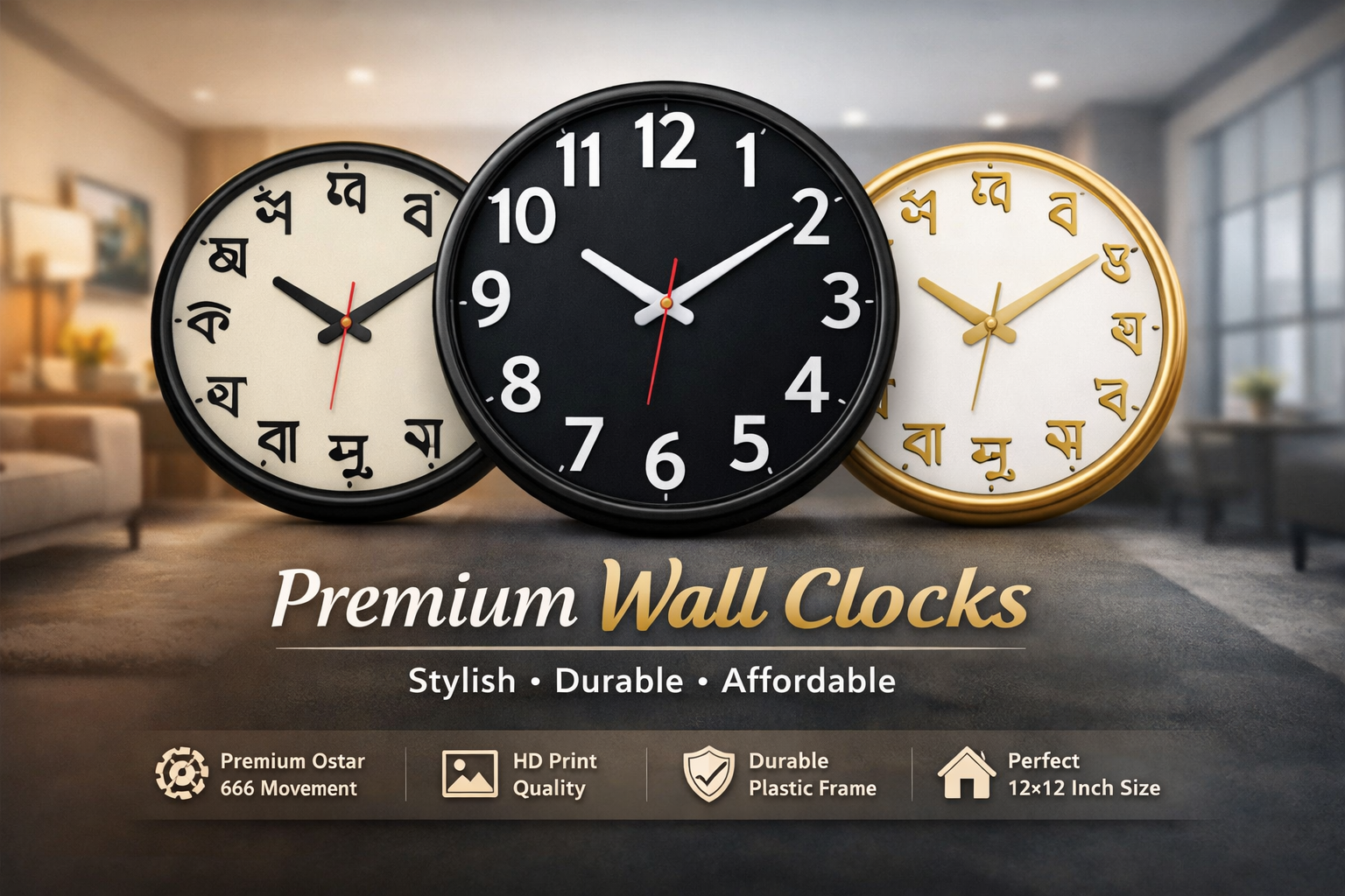 Premium Modern Bangla Typography Wall Clock – Elegant Design 🕐